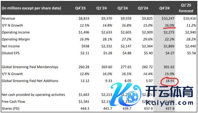 △ Netflix 以单季度 1890 万新增用户量的超预期佳绩罢休了 2024 年