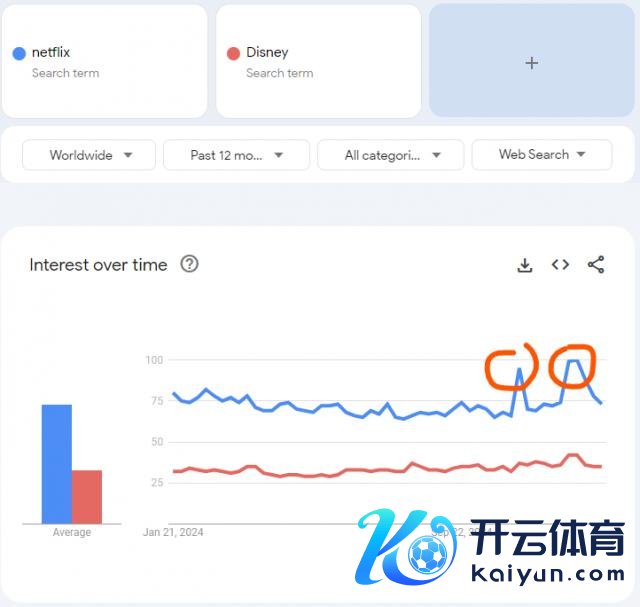 另一方面,Netflix 的搜索热度一直稳稳压住行业老二迪士尼,亦然公司能四季度爆一波新用户的径直诠释。