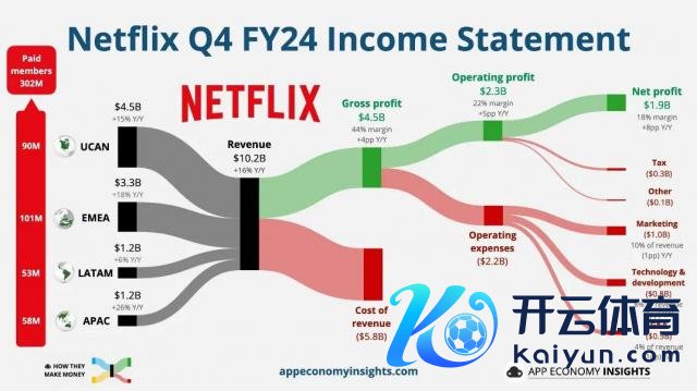 △ Netflix 2024 年第四季度财报上的收入开销结构(点开看大图)
