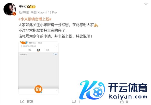 王化刚刚对此回复称:“各人如斯关怀小米眼镜十分开心,在此感谢各人 不外终点对不起要扫各人的兴了,该帐号为多年前苦求,并非新上线,特此施展!”